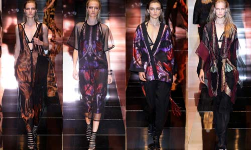 本季Emporio Armani柔滑質地的面料更顯時裝質感,水墨畫似的筆墨圖案更顯東方之美。(你好,我是官方說法)