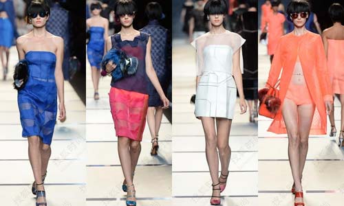 Fendi這壹次的設計嫩的像初戀的果凍。輕盈的色彩和粉嘟嘟的材質,讓這個1925年的老品牌像是剛從春天跳出來壹樣青春又漂亮。你簡直難以相信這是冷冰冰的卡爾·拉格斐(Karl Lagerfeld)的作品。