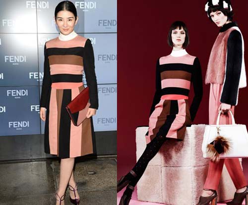 黃奕選擇了Fendi2013秋冬條紋one-piece。
