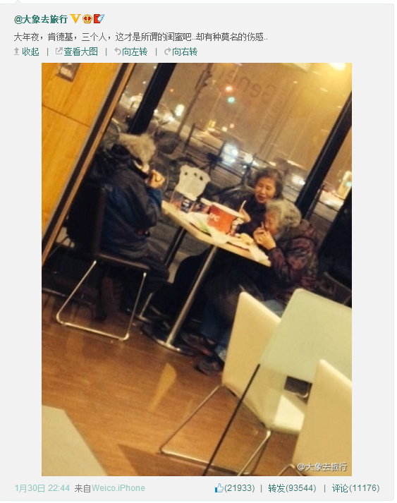微博圖片為鄭州網友所拍攝的除夕夜肯德基,與本文無關