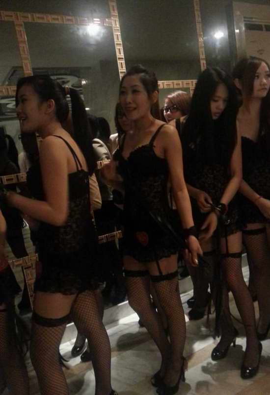在目的地,罗超们被一名身材高大、西装革履的男经理从酒店的大堂带进了咖啡室。经过经理小心又恭敬地询问一番以后,他们被带到了一个铺着鲜艳地毯的楼层。就像他们看过的多数东莞色情桑拿一样,通道两边排列着金色装修基调的房间,里面的设施也是舞池、水床和等离子电视。接下来的流程也与东莞一样,同样是经理带着一众小姐进房自我介绍,供客人选择,等等。