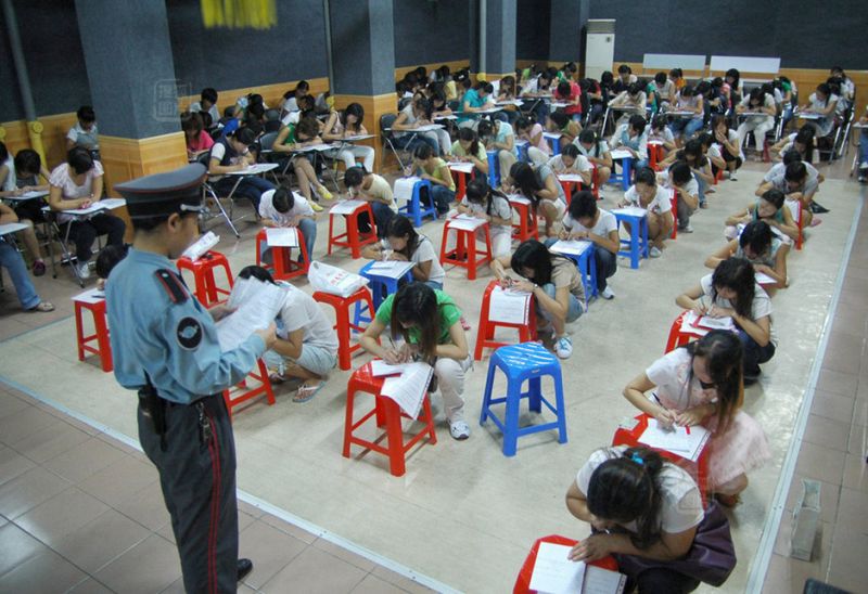僅截至2008年底,常住人口即694.98萬人,其中本地戶籍人口174.87萬人,外來常住人口520.11萬人。加上非登記的流動人口,東莞人口超千萬,這壹龐大的人口為東莞提供了大量的就業。圖為2007年8月15日,廣東省東莞巿長安鎮,外來工在進行入廠文化考試。考試通過的將能進入工廠,不能過的不能進廠。
