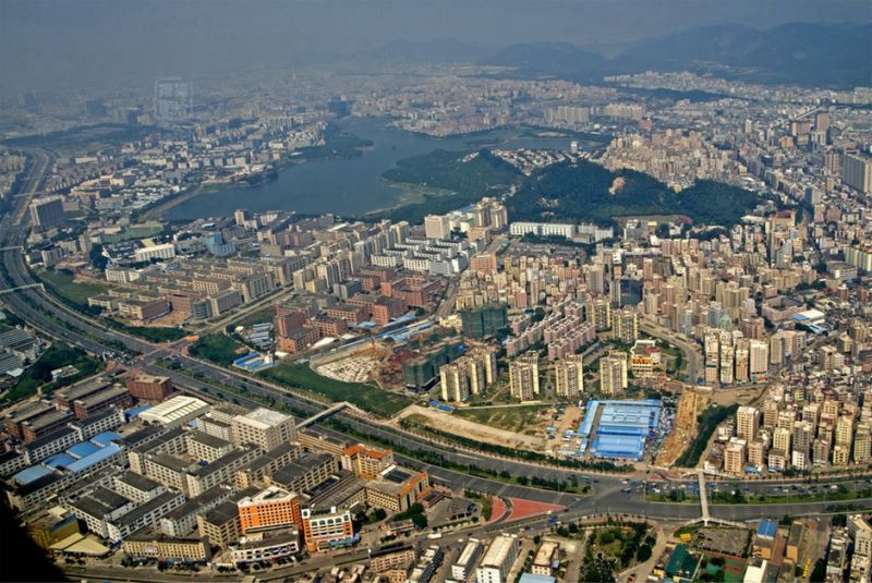作為世界工廠,東莞是中國制造業最具代表性的城市之壹,這裡工廠林立,外來人口是戶籍人口的數倍。東莞由32個鎮街組成,全國千強鎮前拾名中,東莞有5個鎮入選。每壹個鎮區,城市建設和內地的壹個中等規模城市相當。圖為東莞最具代表性的鎮區——長安,壹個完全由農業社區變成現代化城鎮的縮影。