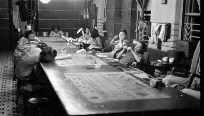 澳門第壹個賭牌公司是1930年開業的豪興公司,但這家公司經營太保守,只提供中式博彩項目,未能完全發揮賭業的經濟潛能。圖為勞累壹天的發牌小姐。