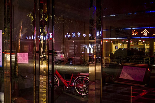 當地人介紹的壹家正規沐足店,壹位保安在無聊的打著手機,掃黃過程中,東莞大部分沐足、桑拿都被封,許多正規營業場所也被勸停。
