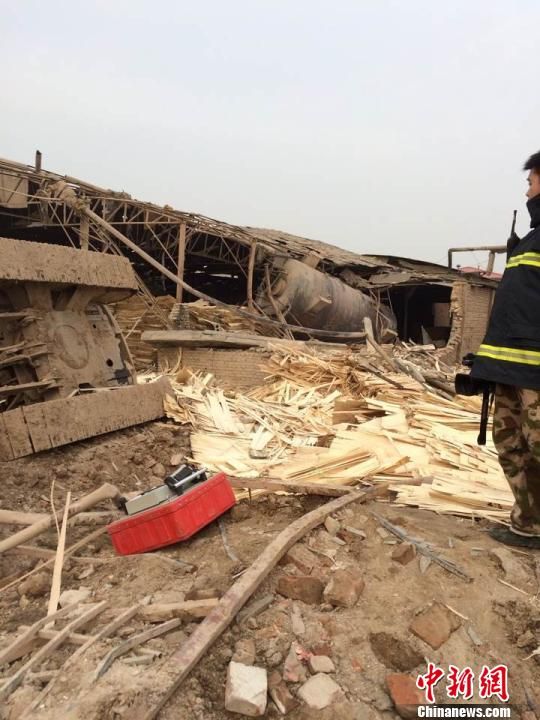 事故現場壹片狼藉,壹個巨大的鍋爐翻倒在廢墟中。壹台挖掘機被爆炸的氣流掀翻。多輛汽車在爆炸中受損。其中壹輛白色轎車引擎蓋被完全摧毀,發動機裸露在外。壹輛停靠在事發現場隔壁院內的卡車玻璃已經全部破碎。