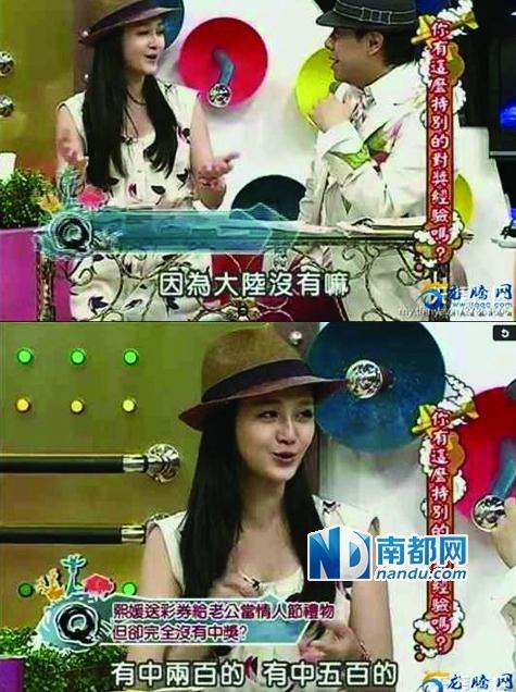 截图中语出惊人的嘉宾不乏娱乐名人,大S也暴露了自己“大陆文盲”的马脚,她曾做客《康熙来了》透露自己送给老公汪小菲一叠彩券(彩票)作礼物的经历,她说:“就送给我老公一叠彩券,因为大陆没有嘛,有中两百的,有中五百的。”