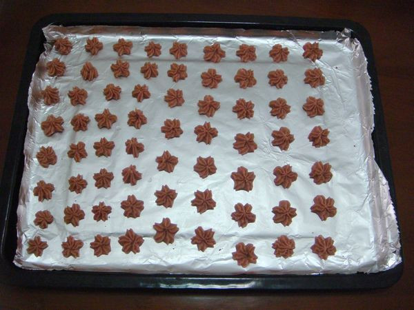 7\在垫了锡纸的烤盘上挤出。