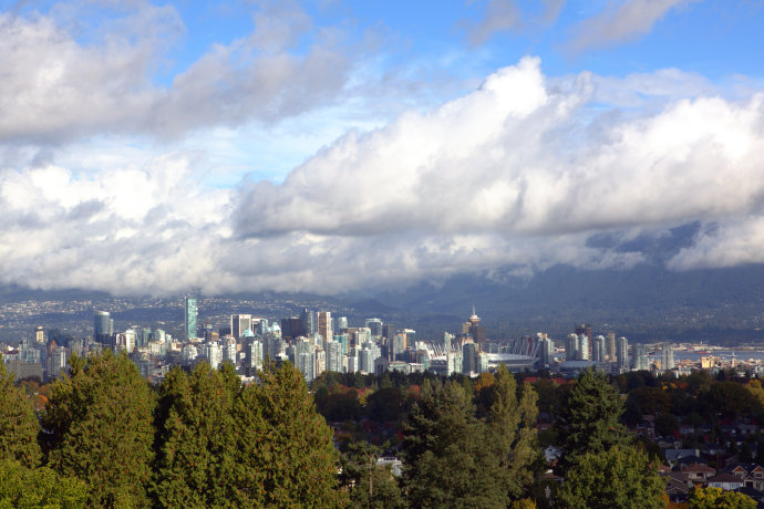 餐厅的另一大特色就是它坐落在温哥华的最高处,顾客可一边用餐,一边欣赏壮丽的北岸雪山。美丽的温哥华Downtown景色也尽收眼底。