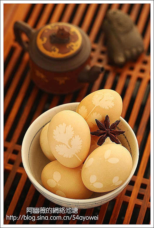 最近没玩博客,冷不丁上来一看——满眼的茶叶蛋,听说这玩意巨贵?一般人消费不起?要不我也凑个热闹整几个尝尝?就做个中国风的土豪金花样美蛋咋样?就煮这几个吧,太多了不行,我怕忒败家被老公休了!