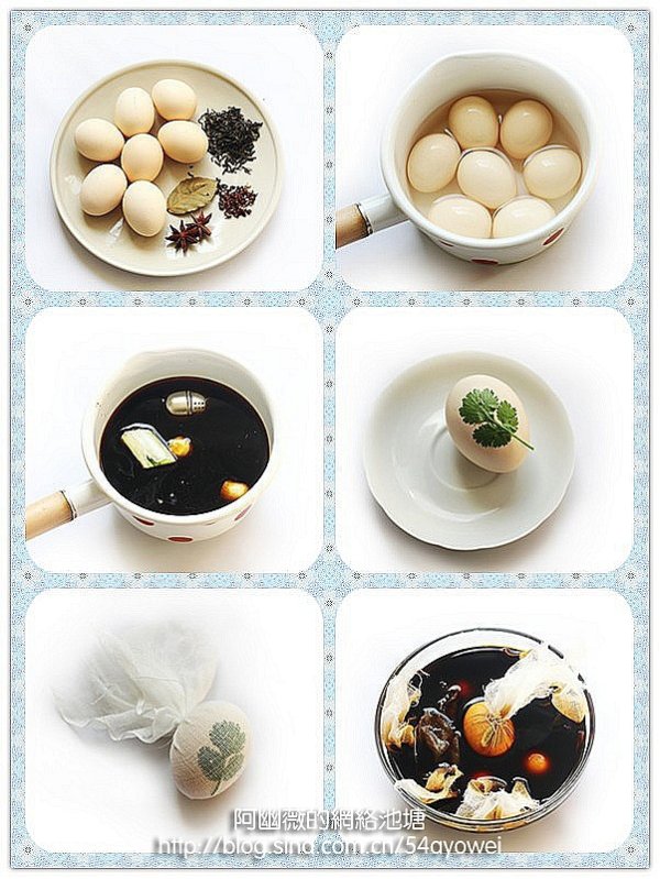 说实话,这道“花样美蛋”拗造型的成份居多,其实泡茶叶蛋时应将蛋皮敲碎,浸泡后才能入味,但为了美观,只得整个蛋浸泡了。贴在蛋皮上的叶子一定要选可从 食用的蔬菜叶,如香菜、豆苗等,这样才能确保安全卫生。我这几个鸡蛋泡得时间有点短,所以颜色偏浅,如果再延长时间,花纹才会更清晰。- 新闻来源于其它媒体,内容不代表本站立场!