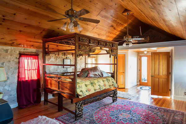 室内环境:这栋用石灰石修葺的唡层主屋,建於19世纪80年代,并於20世纪80年代到90年代经历过翻修和扩建。房屋目前被用作一处家庭旅馆。屋内的一些原始建筑特色,包括长叶松木地板、松木板条天花板和24英寸(约61厘米)厚的石壁。其中的大房间是扩建的一部分,带一座燃柴壁炉和铺有瓷砖的地板。翻修期间还加装了一些不鏽钢厨房电器,以及一座长叶松木做的岛台。一间卧室位於主楼层;另外一间较大的卧室则在楼上。这间卧室有倾斜的松木板条天花板,并通往一个可以俯瞰整片属地的私人阳台。