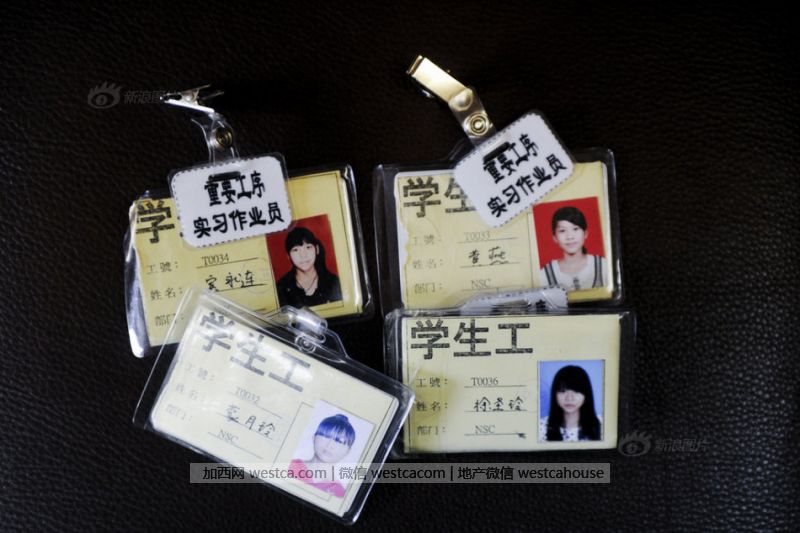 東莞東坑電子廠為來自廣西平南縣未滿16歲初中生所辦理的入廠工牌,他們都被冠以“學生工”的名號。