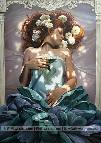比利时女画家Christiane Vleugels,是个传统派的插画家,她对作品细节的勾勒十分用心,她画面上的人物、植物、动物都十分生动,可称得上是超现实主义画家的典范之一。这几幅作品充分的表现出少女情怀,可爱,温柔,精灵,美丽。