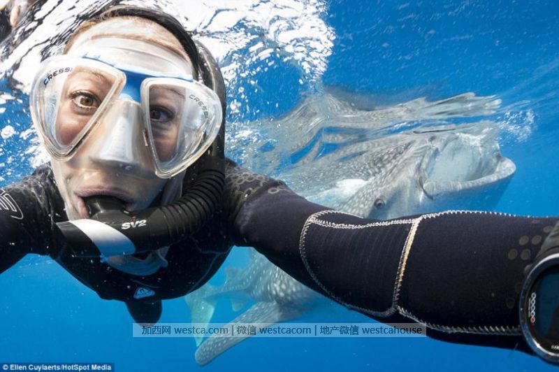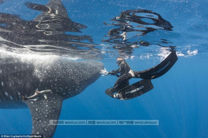 当地时间7月24日,44岁的比利时摄影师艾伦?盖蕾尔思在墨西哥的穆赫雷斯岛,拍摄了一组与鲸鲨近距离接触的照片。画面中,潜水员与一条巨大的鲸鲨之间的距离仅为6英尺。在这个海洋庞然大物面前,潜水员看上去像个小矮人。