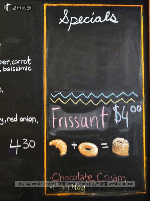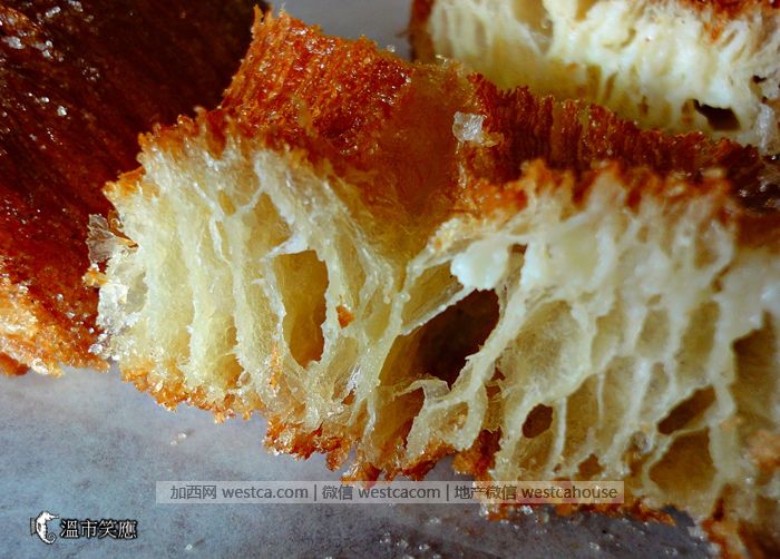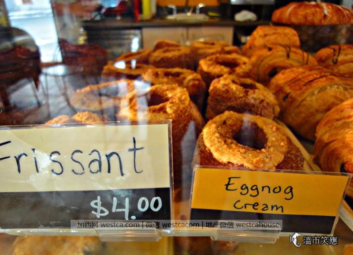 虽然名称不同,但是frissant和cronut一样,外层糖衣包裹,鬆脆弹 牙, 内层绵密, 在温哥华地区烘焙界引起不小的骚动。除了基本款口味,Swiss Bakery搭配季节推出的限定口味内馅,例如圣诞节的『蛋酒口味』,万圣节的『南瓜起司口味』,让喜好尝鲜的温哥华人不时有意外的小惊喜。
