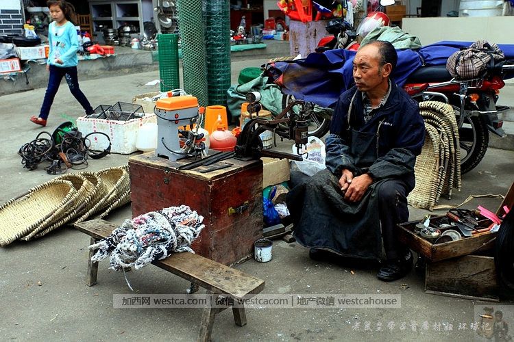 衣服摊对面落寞的鞋匠。