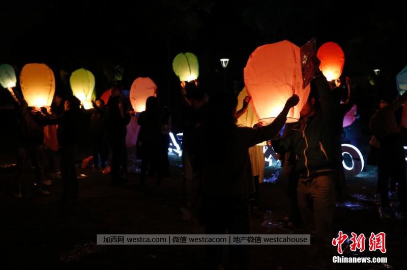 11月3日晚,在上海舉行的壹場名為“點亮命星,我要脫單”的祈福活動吸引了百名單身男女參加。他們用集體放飛孔明燈的方式為自己祈福,希望早日“脫單”。湯彥俊 攝