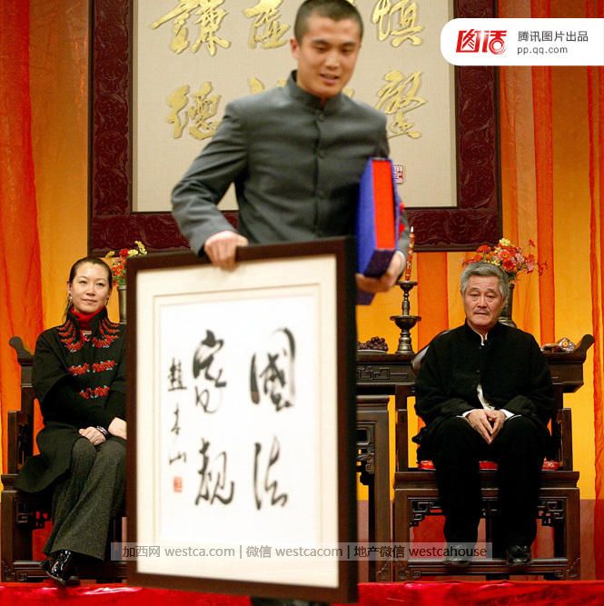 “我把丑話說在前頭,做我的徒弟首先是要做好人,你們當中要是有人做人出現問題,我可要不客氣地清理門戶。”在徒弟們心裡,趙本山是絕對的權威。為了樹立起內部嚴格的規矩,趙本山會贈送徒弟和下屬寫有警句和格言的墨寶或石刻,以顯示“規矩的分量”。圖為2008年,收徒儀式現場,趙本山及其妻子馬麗娟(左)。