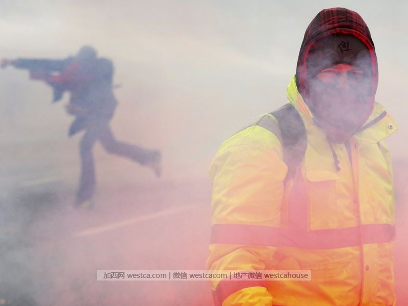 警方在劝阻无效的情况下,向暴力抗法的示威者释放了催泪弹,并用高压水枪驱散人群。