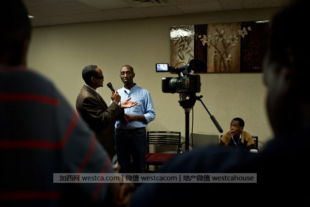 东非移民Mohamud Noor在明尼阿波利斯接受了为本地索马里裔居民服务的电视台的一次采访。Noor是在这一美国中西部州正茁壮成长的索马里社区的领头人,他正试图成为第一位在明尼苏达州立法机关任职的东非移民。