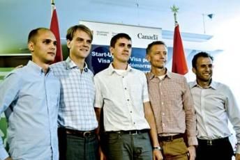 亞歷山大(左贰)較早時與獲發創業簽證(Start-up Visa)的人士合影。資料圖片