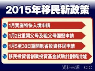 據CIC資料顯示,除明年1月實施EE申請外,包括聯邦投資移民、魁省投資移民等都計劃於2015年重開申請(見附表),申請人應注意相關細節,提早准備材料,以免耽誤送件時間。