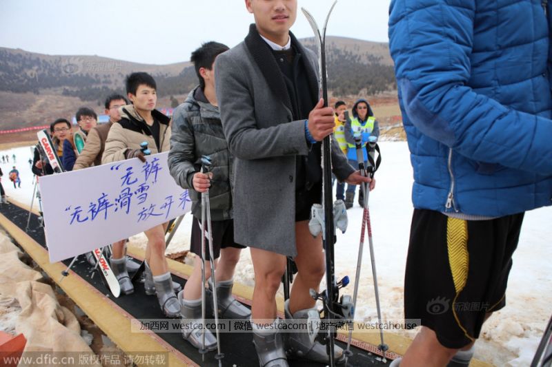 4 / 82015年1月13日,正值“世界無褲日”風靡各地,幾名身材火辣的美眉下半身只穿內褲滑雪,任性裸露修長美腿,並在雪地風馳電掣狂飆雪地摩托。