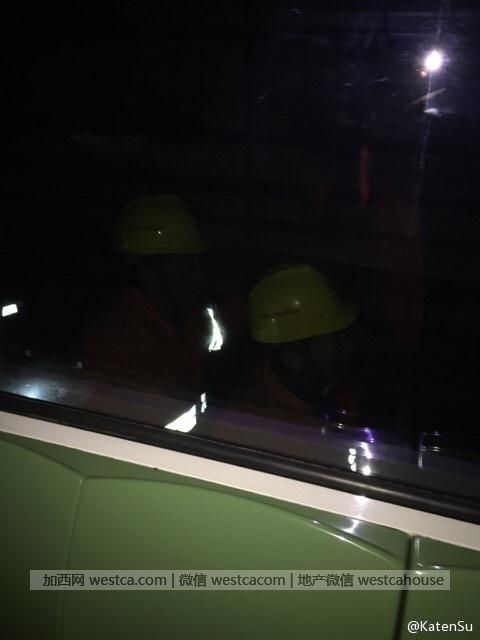 列车车窗外的消防民警。