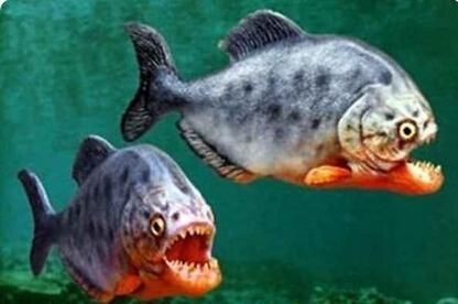 黑食人魚是在南美洲的亞馬遜河和奧裡諾科河流域發現的。這是壹個著名的肉食性魚類。不管多小的食人魚,它的嘴都有著尖銳的叁角形牙齒,這種牙齒就是為穿透並撕碎獵物的皮肉而量身定做的。亞馬遜當地人經常用食人魚的牙齒來做工具和武器。下顎強有力,胃口極好,能在幾分鍾內將獵物吃光。