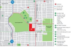 皮尔森中心改造计划 2014年2月5日市政府接受皮尔森中心改造计划,北起西57街南到西59街,东起甘比街(Cambie St.)西到黑惹街(Heather St. ), 开发建3-28层高楼的独立小区3000多住宅单位。同时修建原来预留在57街的地铁站出口。图15,16,17,18。