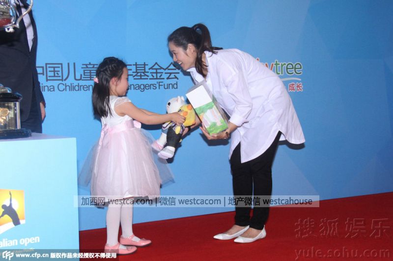 公益活动李娜更要亲力亲为!白衬衣的李娜是不是更加“孕味”十足呢?