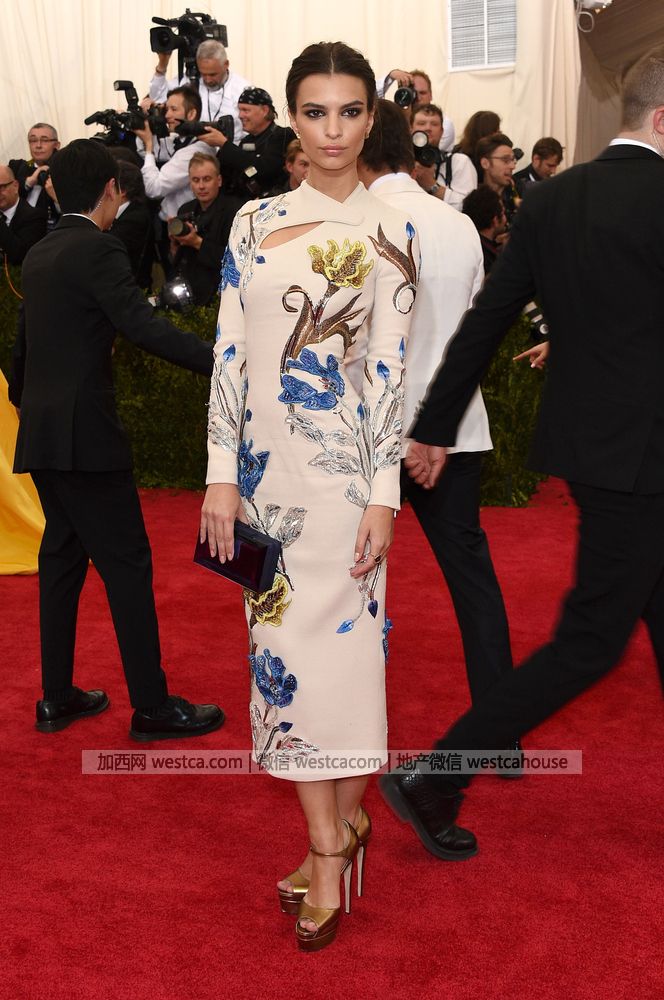 超模Emily Ratajkowski穿着的礼服款式类似中国的旗袍