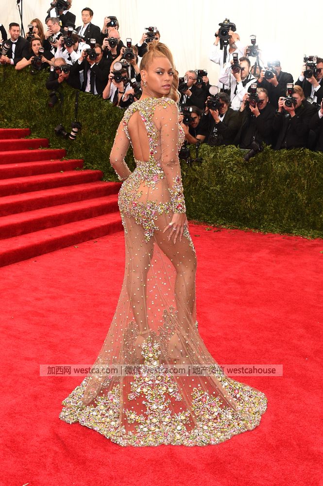 Beyonce还是一袭全透视礼服,与高马尾浑然一体,气场十足!
