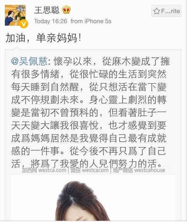 孕婦也難逃王思聰的毒舌,2014年1月,吳佩慈微博宣布即將臨盆生產,王思聰立即轉發微博:“加油,單親媽媽!”