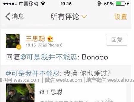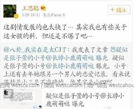 陳赫劈腿張子萱的消息曝光後,王思聰轉發網友微博稱他手上有壹些關於張子萱的料,同時他更在回復網友時稱張子萱是“Bonobo”,而網友們通過搜索發現該單詞的翻譯為“倭黑猩猩”。