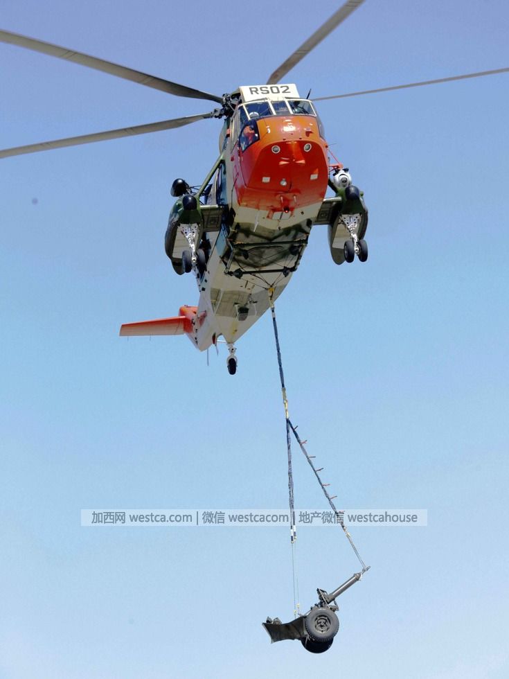 参与演习的比利时“海王”军用直升机吊运120mm迫击炮。