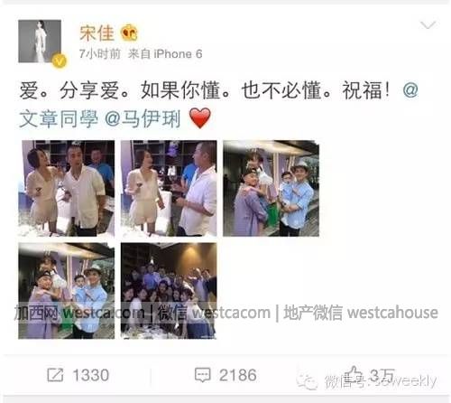 眾多藝人朋友如宋佳、俞灝明等,也在生日派對現場見證了文章申請求婚的壹幕,宋佳主動把盛況PO上微博。
