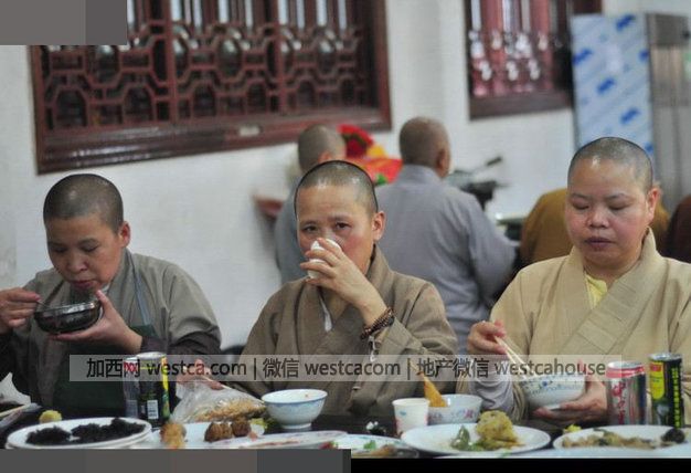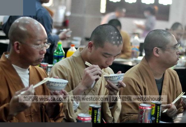 实拍和尚尼姑聚会 "大鱼大肉"诱人