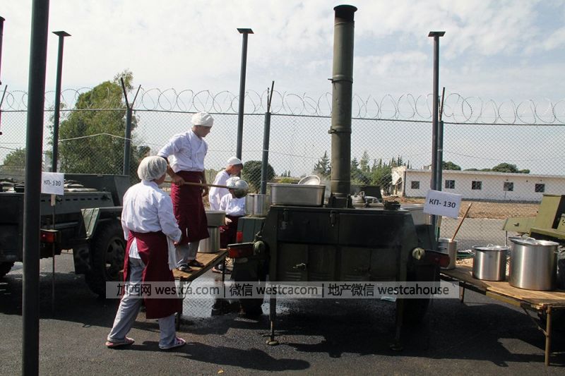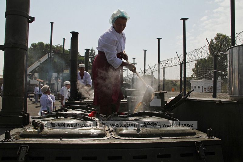 数十辆野战炊事车提供伙食保障