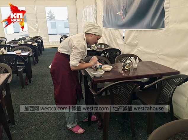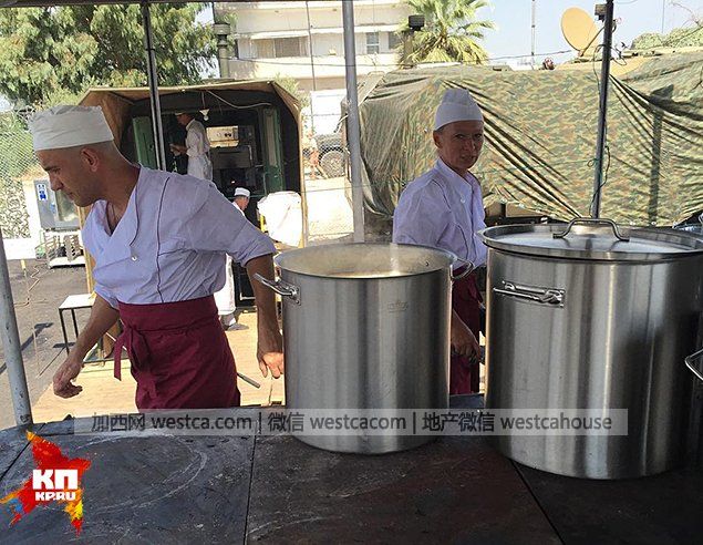 俄罗斯媒体10月2日首度曝光驻叙利亚“赫梅明”军事基地的俄军营地照片。从照片中可以看出,营地生活设施齐全,营区内设有帐篷餐厅、面包房、装有空调的板房宿舍,甚至还有桑拿房和熨衣房。“赫梅明”军事基地是执行打击IS作战任务俄军部队的驻扎地。自9月30日起,俄军机从该基地起飞,已对IS阵地实施了数轮空袭行动。(宁远)图为官兵就餐的帐蓬餐厅。