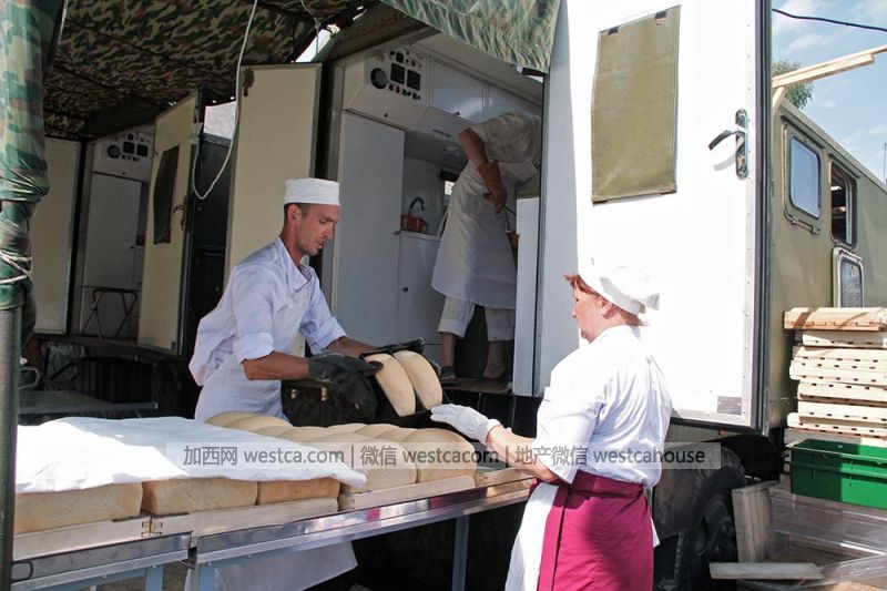 烤好的白列巴,据称炊事车一天能烤成吨面包