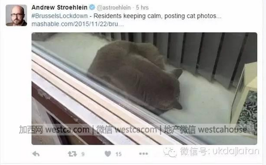 原来,网友们为了蛊惑那些想从推特上得到警方消息的恐怖分子,就在推特上用猫照片来发#布鲁塞尔宵禁这个话题。