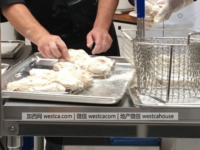 把雞肉放入面包屑中,反復沾取 7 次。(肯德基是有多愛 7 這個數字)