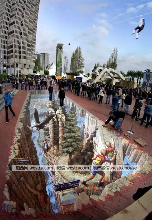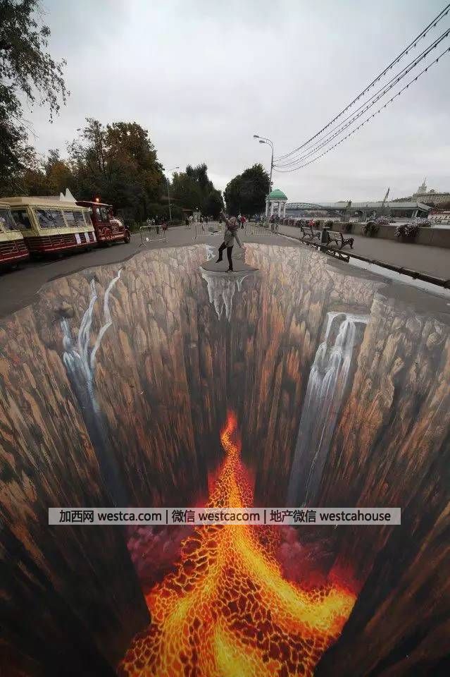 这不,这些马路被画成上了3D涂鸦,而且画的很逼真,一不小心走上前,还真会吓那么一跳……