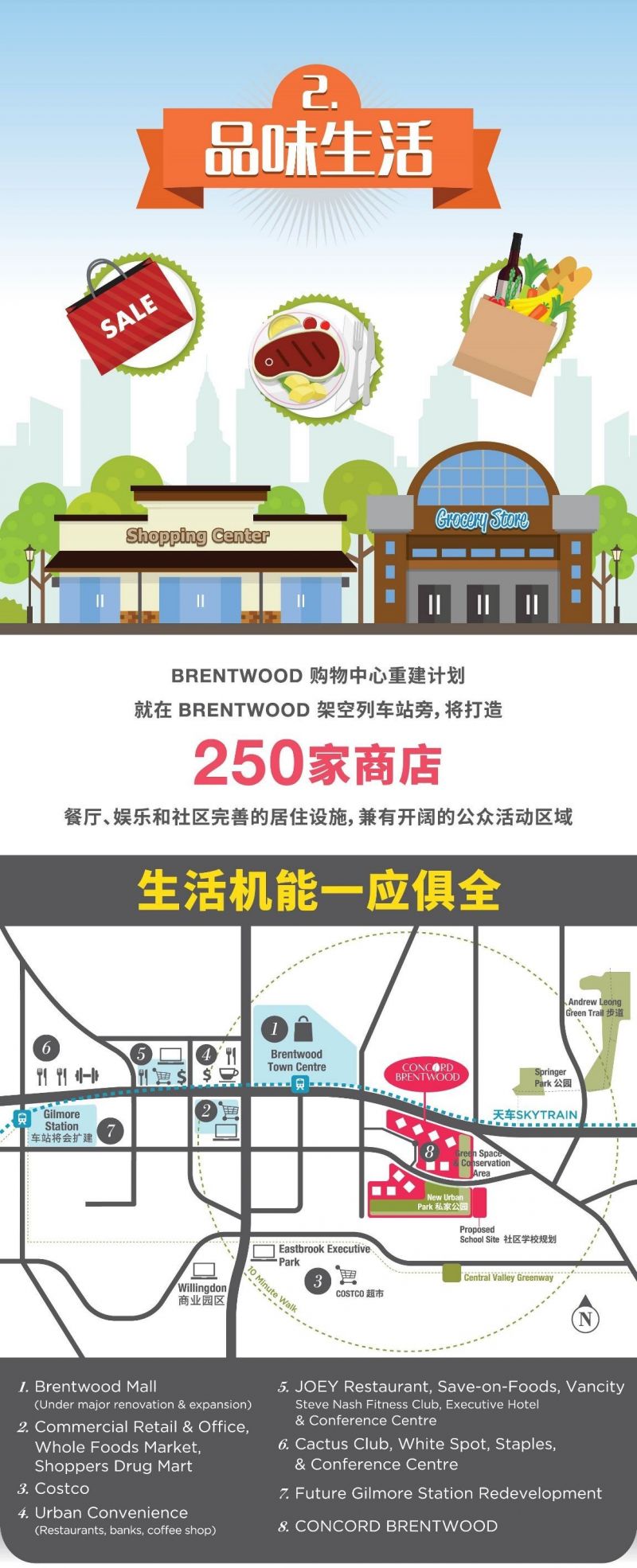 Concord Brentwood 世博汇位居本拿比Brentwood商圈,步行5分钟即可到达Brentwood Town Centre,Brentwood 购物中心计划重建,该计划包括250家商店、餐厅、娱乐以及社区各项设施,如本地居民推崇的健康食品超市-Whole Foods 也近在咫尺,让居者坐享居住舒适与生活便利,更加符合现代人生活理念。