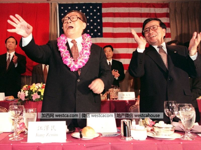 1997年11月2日,江澤民、曾慶紅參加洛杉磯華人社團歡迎晚宴(圖源:AFP/VCG)