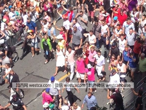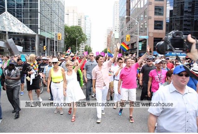 星期天下午數千民眾走上街頭參加游行。下午兩點游行開始前,加拿大總理杜魯多也來到游行隊伍之中,成為加拿大歷史上第壹位參加同性戀大游行的現任總理。除了杜魯多外,安省省長韋恩,以及多倫多市長莊德利也參加游行。
