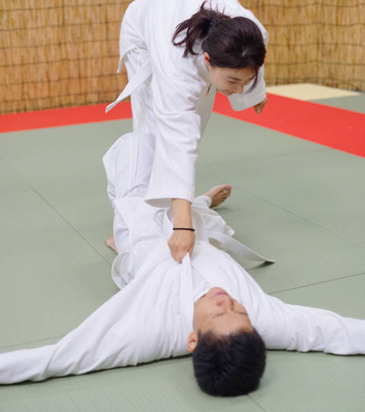 两人做柔道任务认真十足,郭晶晶放倒霍启刚。(资料图)