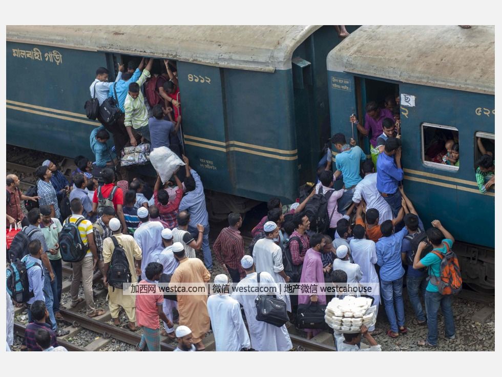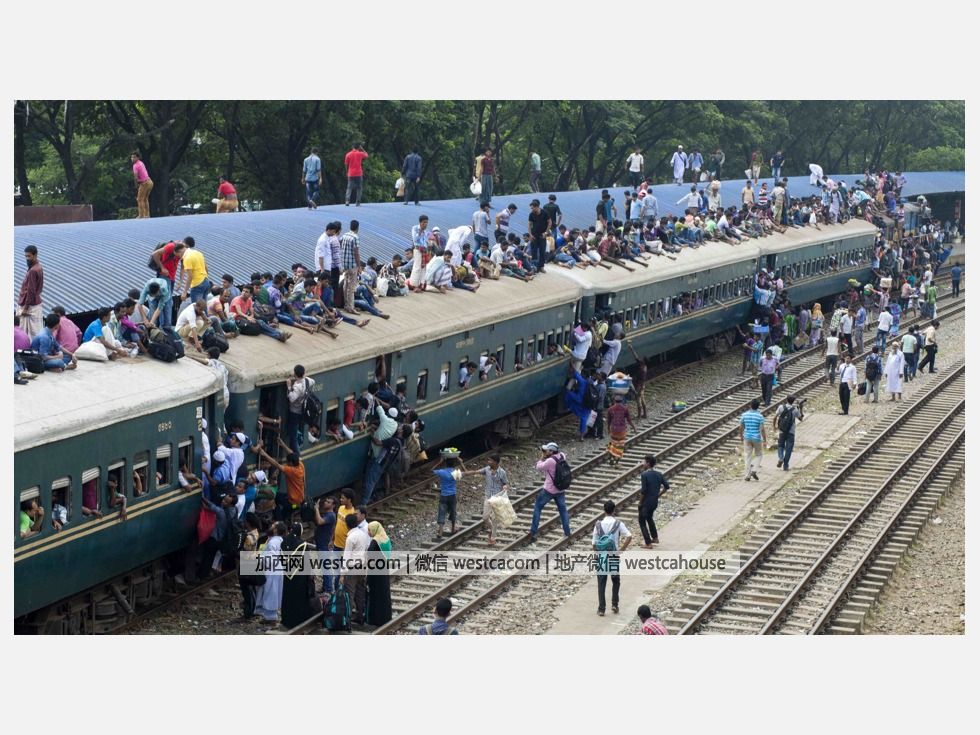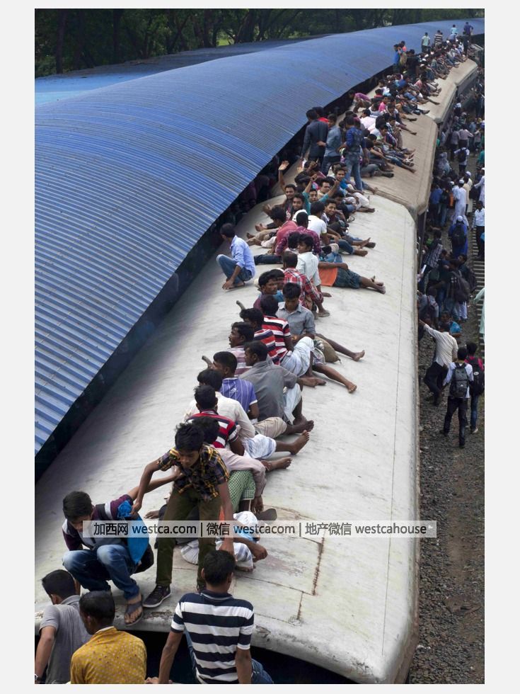 圖為孟加拉國達卡,穆斯林民眾搭乘超載的火車,返家慶祝宰牲節。